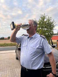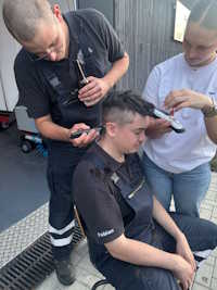 Eine Aktion gab es dort noch. Einige Feuerwehrmänner hatten im falle eines vorderen Platzes angekündigt, ihre Kopfhaare abzurasieren. Das wurde dann am Gerätehaus auch gleich vorgenommen
