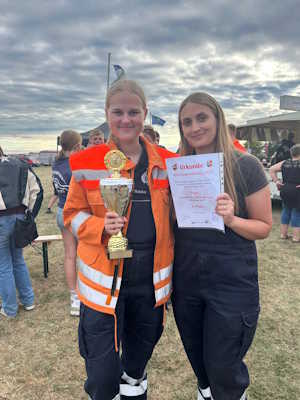 Bei den Aktiven Männern und Frauen gab es kein Halten mehr. Mann bejubelte den Erfolg und die Gruppenführerin ging stolz zur Platzmitte, um den Pokal und die Urkunde abzuholen.